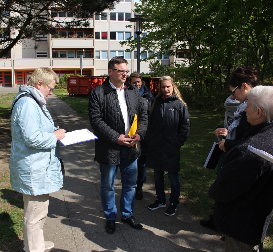 Probleme machte der Abgeordnete beim Verhältnis der Gewobag, der die meisten Wohnungen in diesem Bereich gehören, und deren Mietern aus. „Es gibt offensichtlich Defizite bei der Kommunikation der Wohnungsbaugesellschaft und den Einwohnern in Tegel-Süd. Die Gesellschaft hat es beispielsweise nicht geschafft, ein schlüssiges Sicherheitskonzept durchzusetzen, obwohl gerade in diesem Punkt auch die Menschen hier Handlungsbedarf sehen. Auch bei der Neuvermietung der eigentlich sehr gut gemeinten Einrichtung der Kiezstube gibt es noch Gesprächsbedarf. Etwas Ähnliches habe ich damals bei unserer Unterschriftenaktion bezüglich der Fassadengemälde zu hören bekommen. Von einer städtischen Wohnungsbaugesellschaft erwarte ich eigentlich mehr Fingerspritzengefühl im Umgang mit den Mietern“, so Stephan Schmidt nach dem Rundgang.